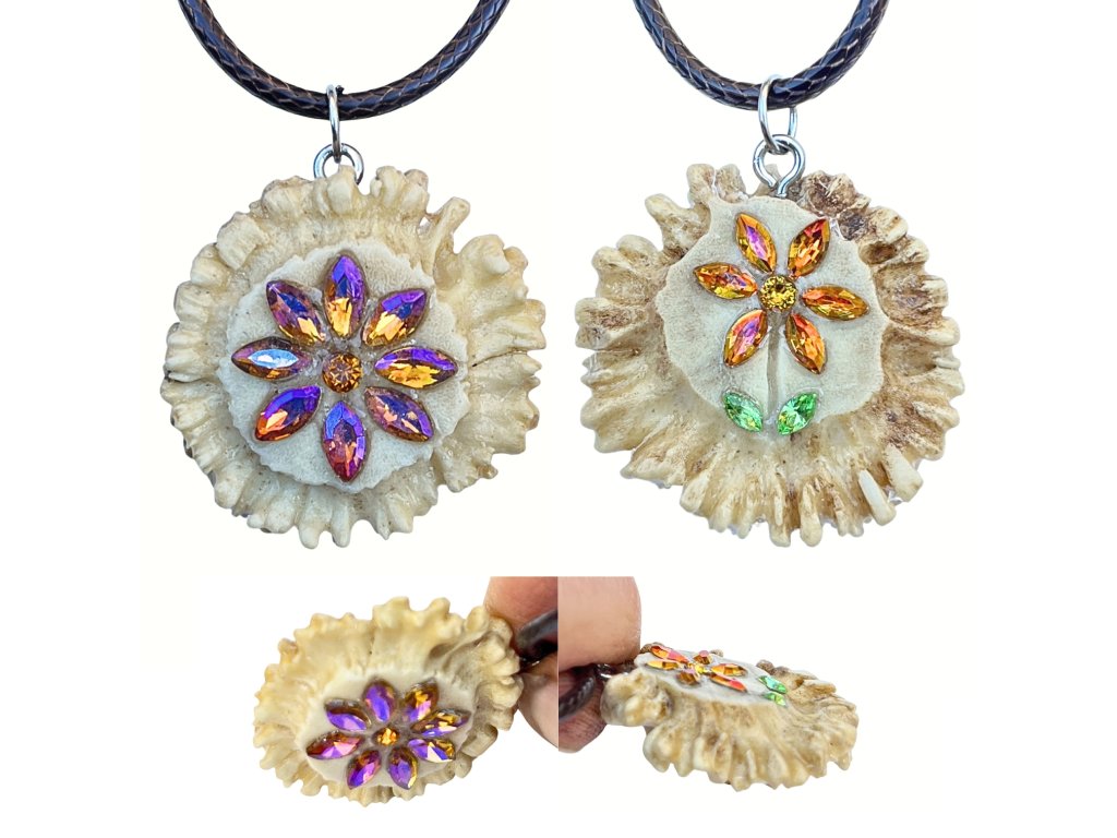 Paroží je řezané, broušené, frézované, leštěné, mořené a lakované. Každý kus je originál. Komponenty chirurgická ocel.