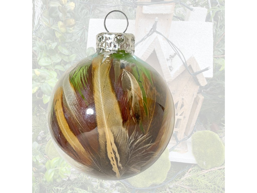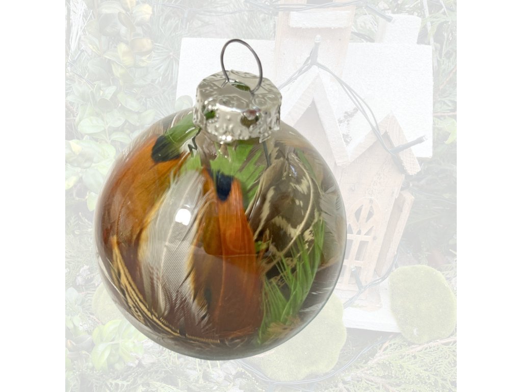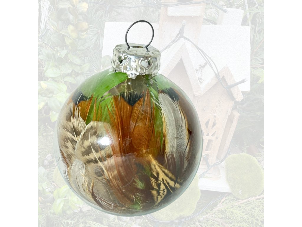 Originální ozdoba na stromeček - skleněná koule plněná přírodním peřím. Každý kus originál. Možnost zakoupení i v sadě 6ks