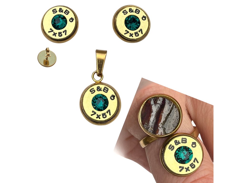 Souprava prstenu, náušnic a přívěsku s nábojnicí a parožím