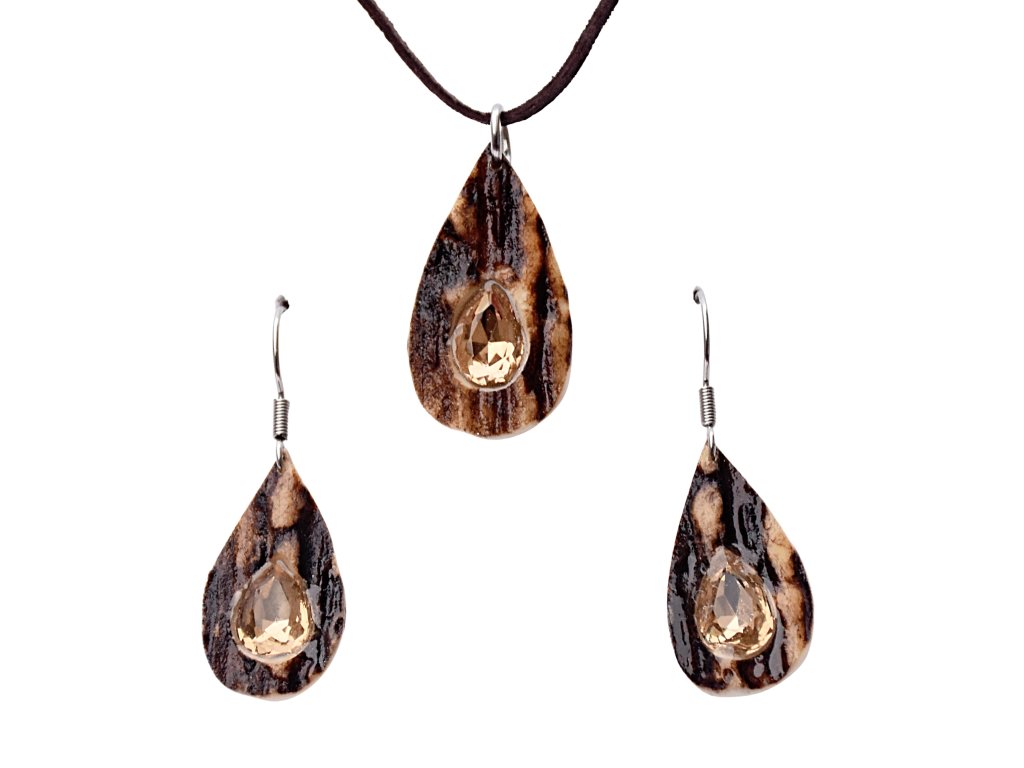 Paroží je řezané, broušené, frézované leštěné, mořené a lakované. S kameny Swarovski. Každý kus je originál. Komponenty jsou z chirurgické oceli