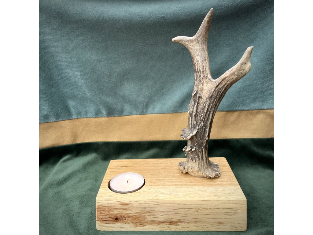 Připravte se dlouhé zimní večery s tímto jedinečným svícnem, které spojuje přírodní materiály a sváteční atmosféru. Svícen je vyrobený z kvalitního dubového dřeva a ozdobený parožím, což mu dodává originální a přírodní vzhled.