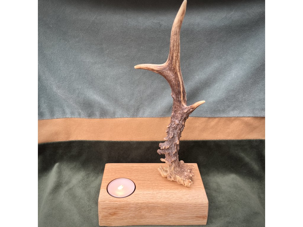 Připravte se dlouhé zimní večery s tímto jedinečným svícnem, které spojuje přírodní materiály a sváteční atmosféru. Svícen je vyrobený z kvalitního dubového dřeva a ozdobený parožím, což mu dodává originální a přírodní vzhled.