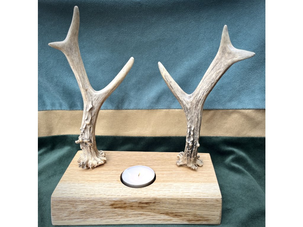 Připravte se dlouhé zimní večery s tímto jedinečným svícnem, které spojuje přírodní materiály a sváteční atmosféru. Svícen je vyrobený z kvalitního dubového dřeva a ozdobený parožím, což mu dodává originální a přírodní vzhled.